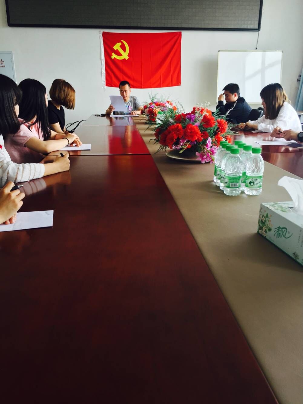 会议由学生党支部书记曾四龙主持。首先曾书记给所有毕业生党员上了一堂党课,主要讲解了毕业生党员党组织关系转接的问题,教育学生在离校之后的注意事项,要注意党员形象,赋予党员责任感,在社会中要发挥自身的党员作用。