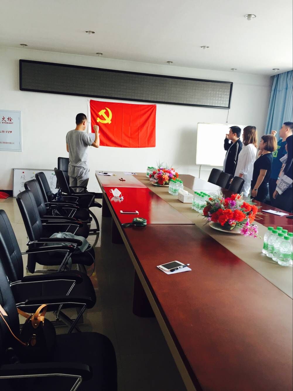 最后,由曾书记带领所有毕业生党员重温入党誓词结束了此次毕业生党员教育大会。