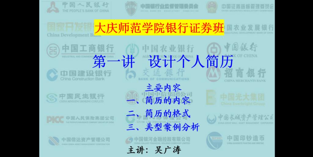 吴广涛主任以其丰富的专业知识,用通俗易懂、深入浅出的表述,为同学们讲解了如何设计一份有效的简历、如何制作一份优秀的简历。接下来,将按照课程体系继续安排后续课程,进一步提升“银行证券班”同学银行和证券行业的实习就业机会。