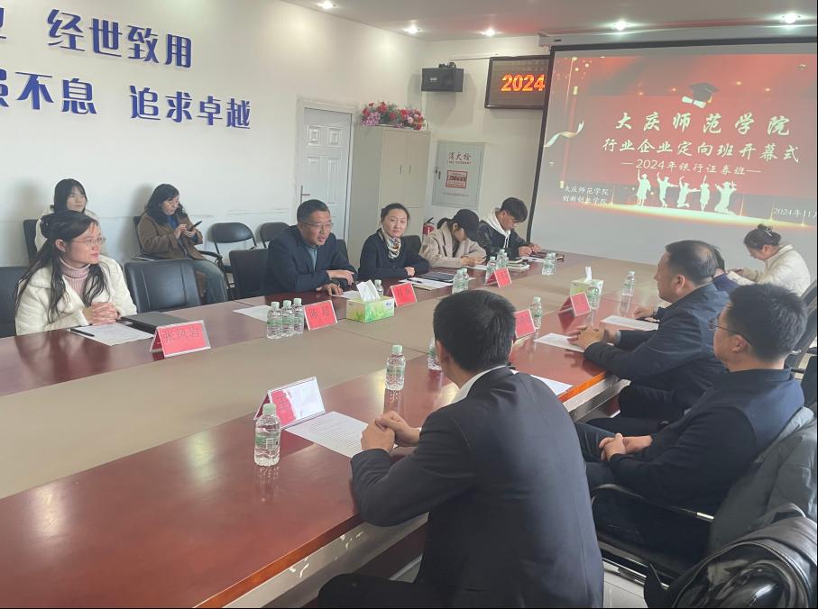 为推进落实学校发展战略,通过打造行业产业定向班进一步提升大学生创新创业能力,推动高质量实习就业一体化,伟德bv1946创新创业学院和bv伟德国际1946联合于2024年11月6日在第五教学楼402室,召开伟德bv1946行业企业定向班——银行证券班2024年秋招启动会。中国银行大庆分行宋晓海副行长、大庆市百年互联科技有限公司王诸奎总经理、大庆市经济学会陈思先生、新开普电子股份有限公司常芊总监、伟德bv1946招生就业处吴广涛主任、bv伟德国际1946院长刘楠教授、bv伟德国际1946经济与金融专业负责人王植荔副教授、bv伟德国际1946实验教学中心主任张凤岩副教授、bv伟德国际1946数字金融教研室主任王盼博士、经济与金融系刘政宁老师、黄佳老师、李宝珠老师、李金宝博士,以及本届定向班38名学员共同参加了会议。会议由bv伟德国际1946经济与金融系王盼博士主持。