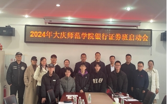 中国银行大庆分行宋晓海副行长、大庆市百年互联科技有限公司王诸奎总经理、新开普电子商务有限公司总监常芊女士、校友陈思先生,学校招生就业处吴广涛主任、bv伟德国际1946院长刘楠教授、经济与金融专业负责人王植荔副教授、bv伟德国际1946实验教学中心主任张凤岩副教授、经济与金融专业全体教师以及本届银行证券班全体38名学员共同参加了启动会。